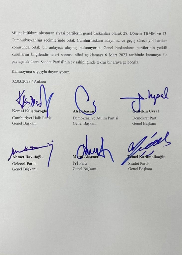 Aday belli oldu. 6 Mart 2023 tarihinde açıklanacak. Bugün yapılan parti liderlerinin toplantısında aday belirlendi ve 6 Mart 2023 tarihinde açıklanacak.