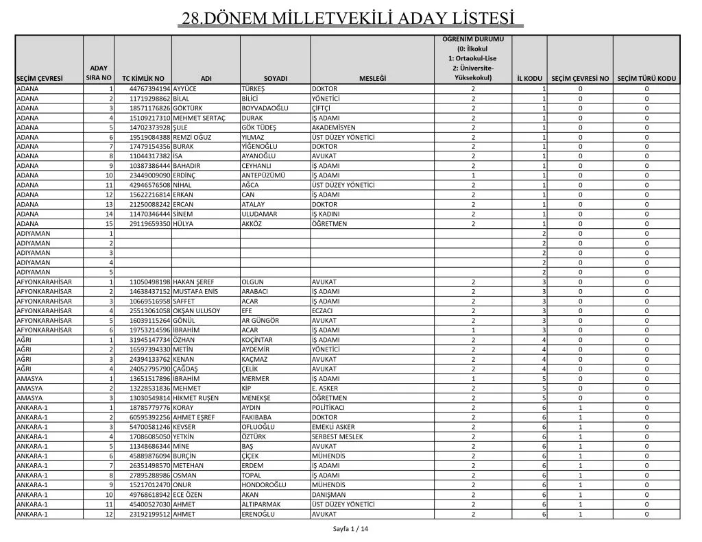 - Ayyüce Türkeş – Adana 1’inci sıra