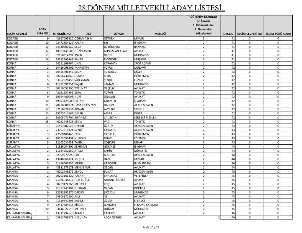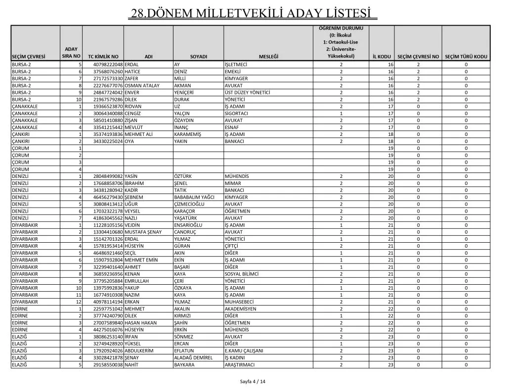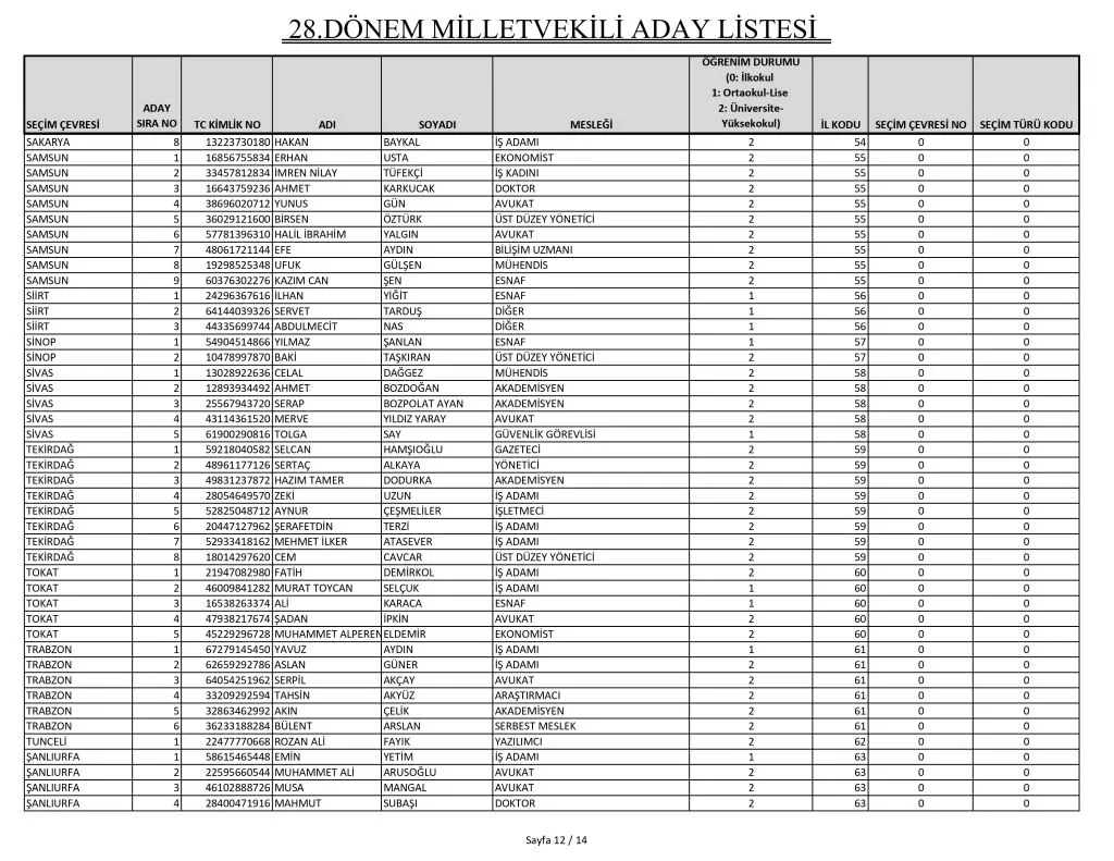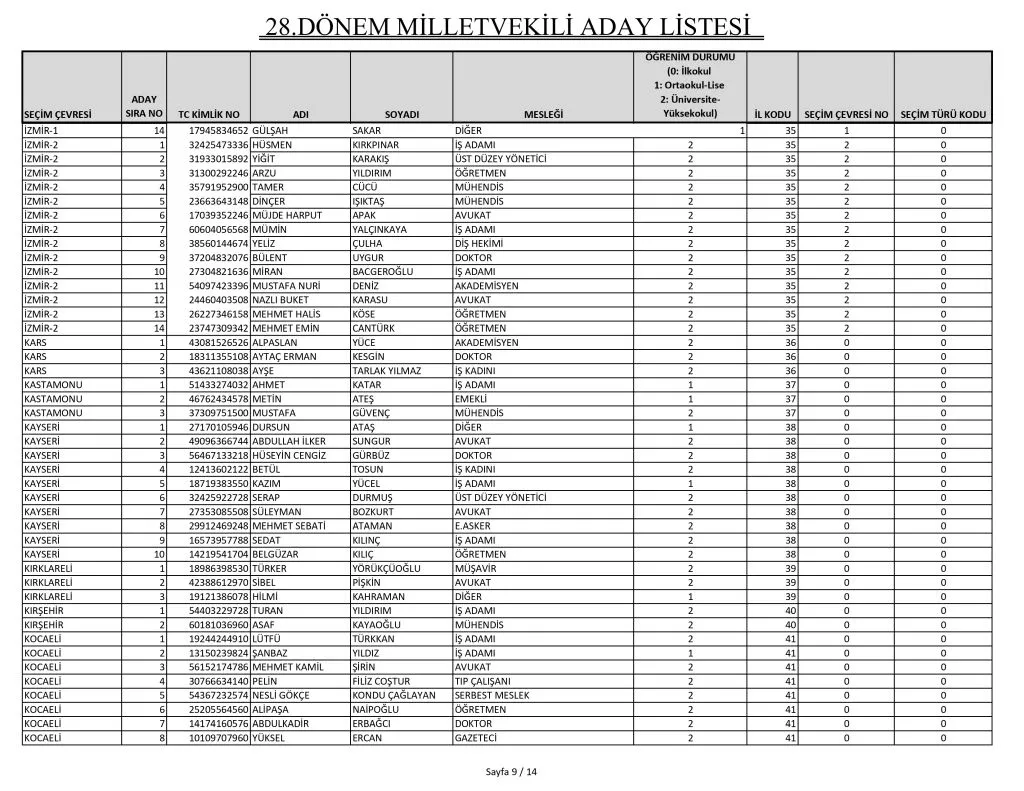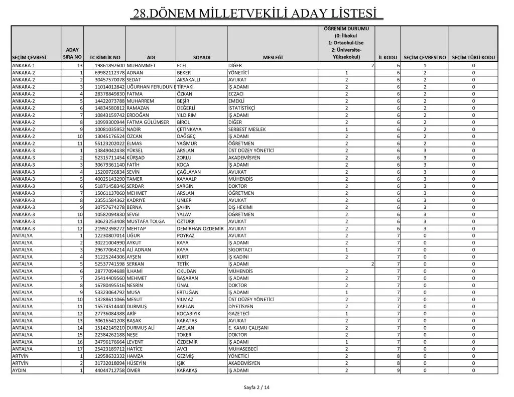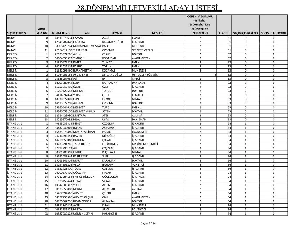 - Ece Güner – İstanbul 2. Bölge 4’üncü sıra