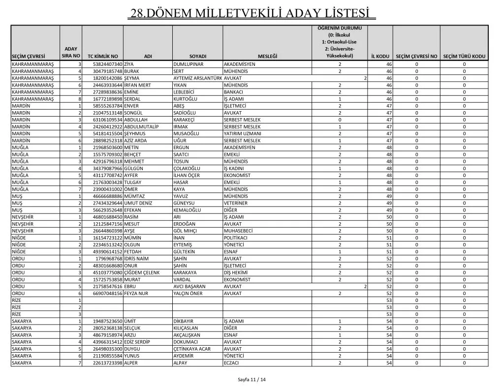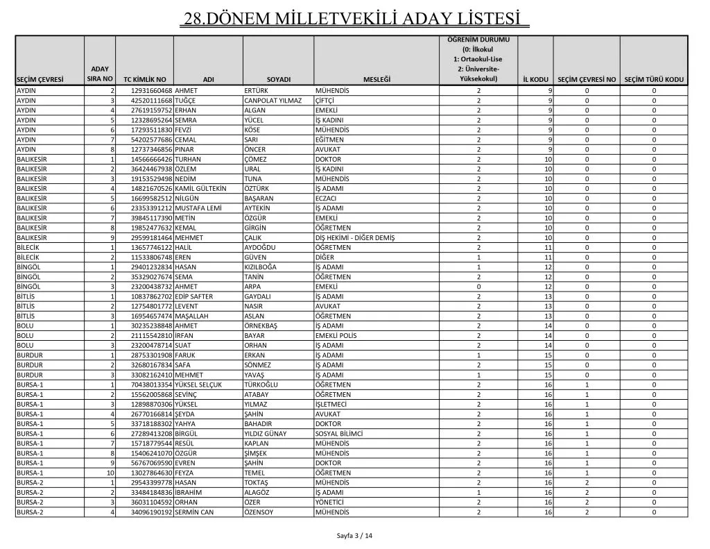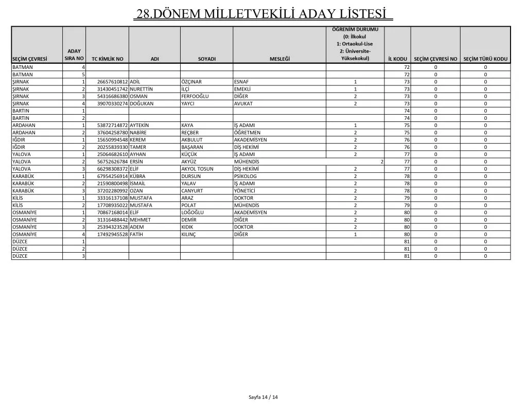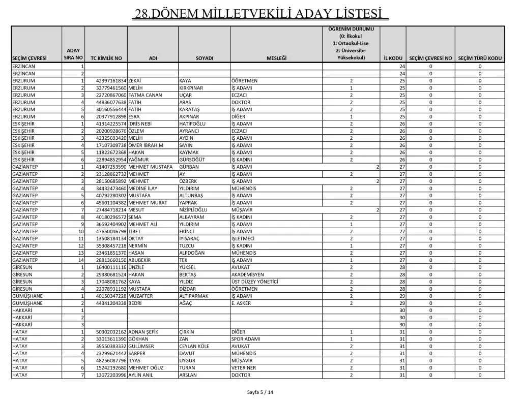 - Edip Safter Gaydalı – Bitlis 1’inci sıra
