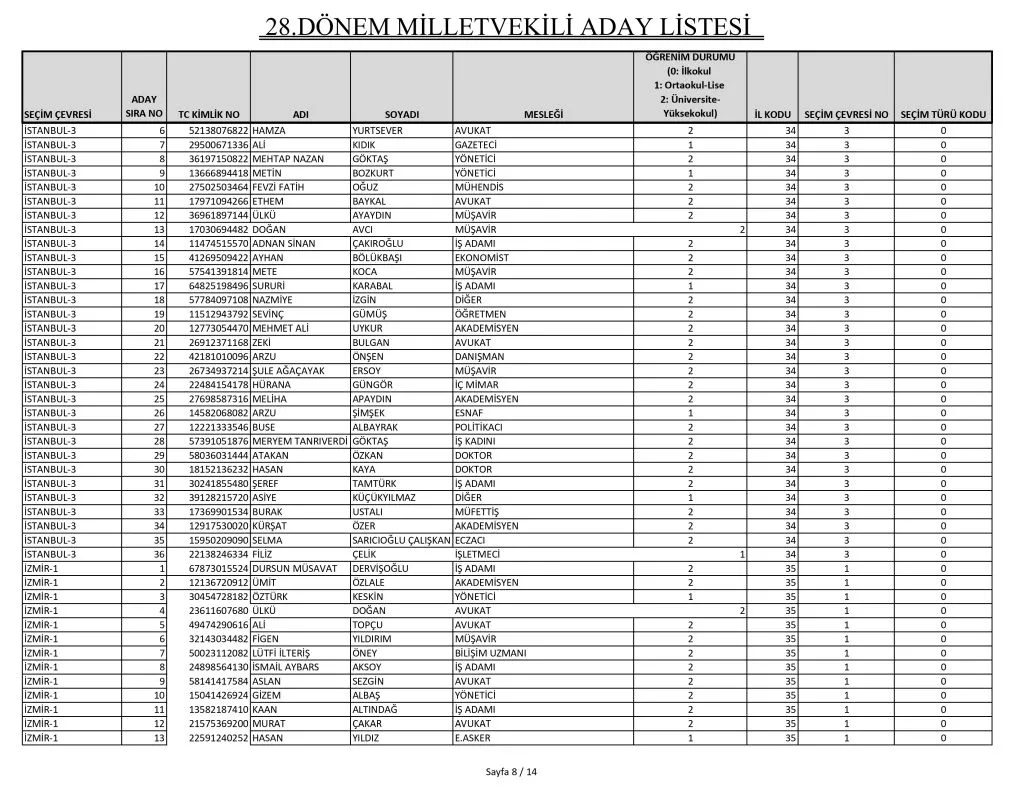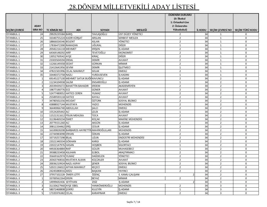 - Seyithan İzsiz – İstanbul 3. Bölge 2’nci sıra