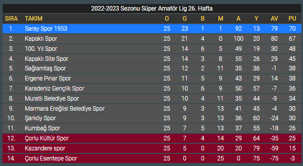 SON DAKİKA2022-2023 Sezonu Süper Amatör Lig 25. Hafta 12/04/2023 Haber Merkezi 1 dkFacebookXWhatsApp2022-2023 Sezonu Süper Amatör Lig 25. Hafta