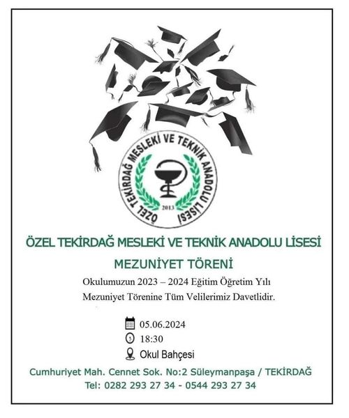 SON DAKİKAÖZEL TEKİRDAĞ MESLEKİ TEKNİK VE ANADOLU LİSESİ MEZUNİYET 05/06/2024 Haber Merkezi 1 dkFacebookXWhatsAppÖZEL TEKİRDAĞ MESLEKİ TEKNİK VE ANADOLU LİSESİ MEZUNİYETGüncelleme: 05.06.2024 20:52