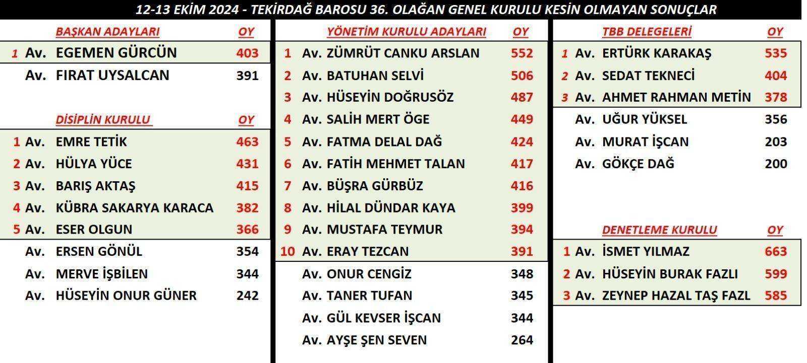SON DAKİKATEKİRDAĞ BAROSU 36. OLAĞAN GENEL KURULU KESİN OLMAYAN SONUÇLAR 14/10/2024 Haber Merkezi 1 dkFacebookXWhatsAppTEKİRDAĞ BAROSU 36. OLAĞAN GENEL KURULU KESİN OLMAYAN SONUÇLAR