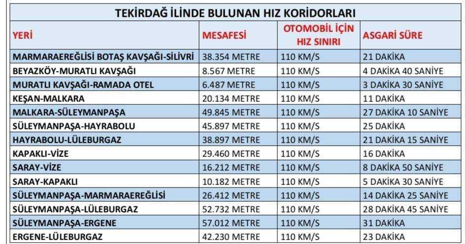 📍Daha önceden kurulumu yapılan Tekirdağ, Çanakkale, Edirne ve Kırklareli illerimizin sınırları içerisinde 33 adet Ortalama Hız İhlal Tespit Sistemleri ile denetimler devam etmektedir. Bu hız koridorlarına ek olarak;