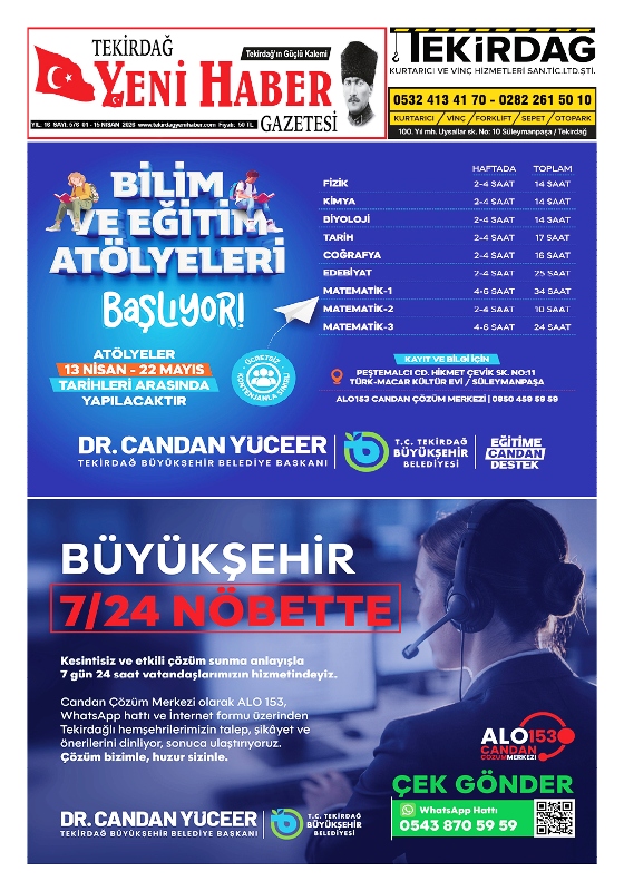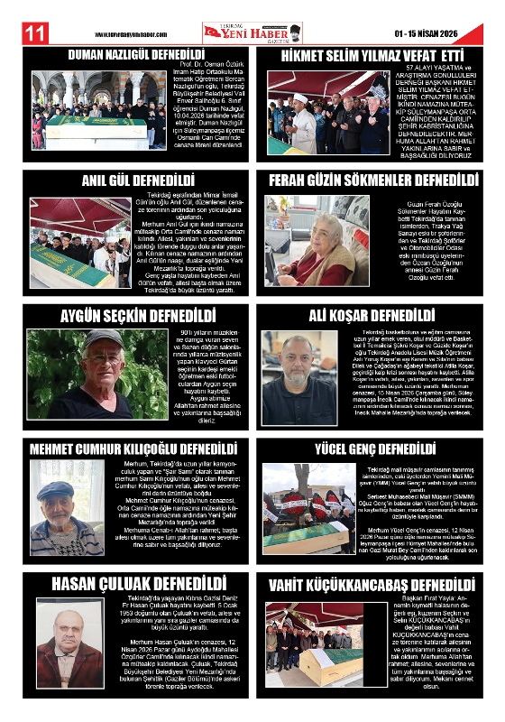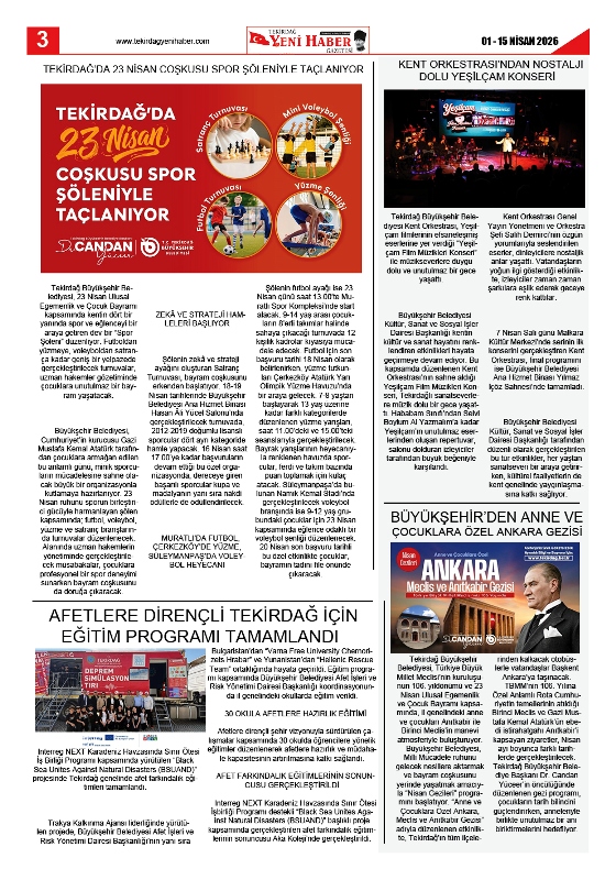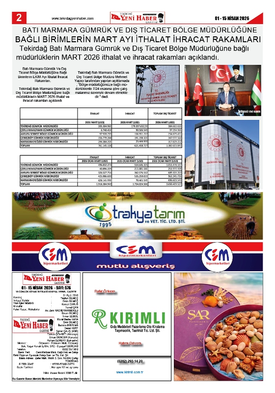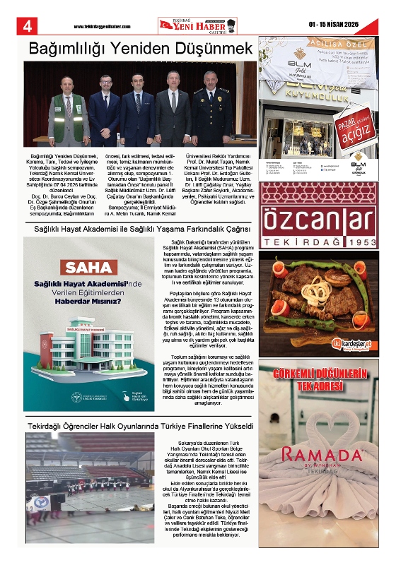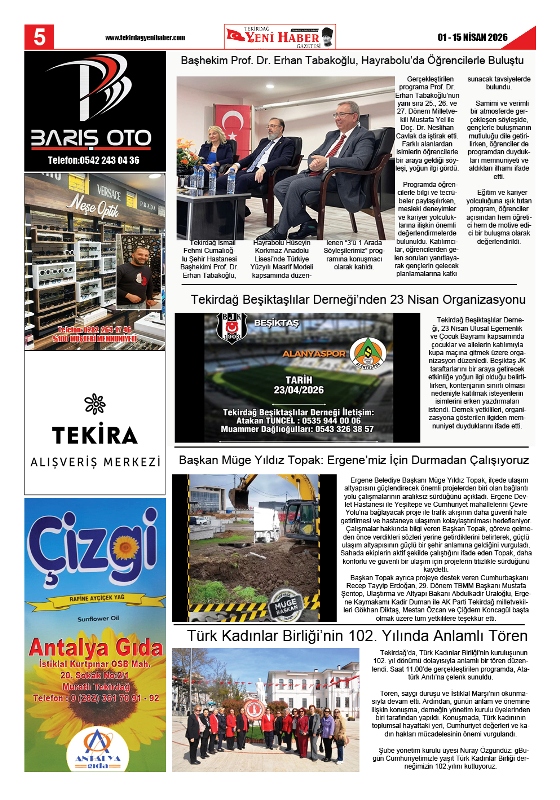 E-GAZETETekirdağ Yeni Haber Gazetesi 576.Sayı Çıktı 16/04/2026 Haber Merkezi 1 dkFacebookXWhatsAppTekirdağ Yeni Haber Gazetesi 576.Sayı Çıktı