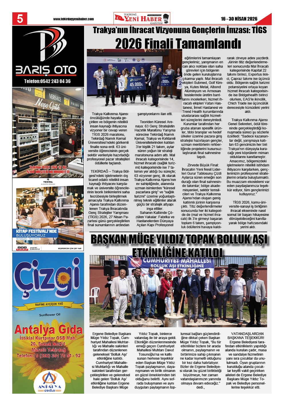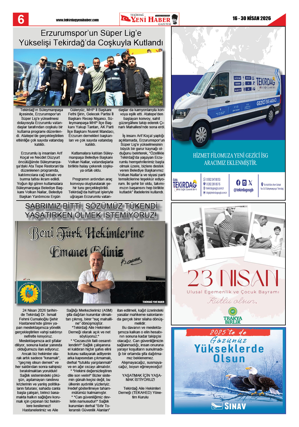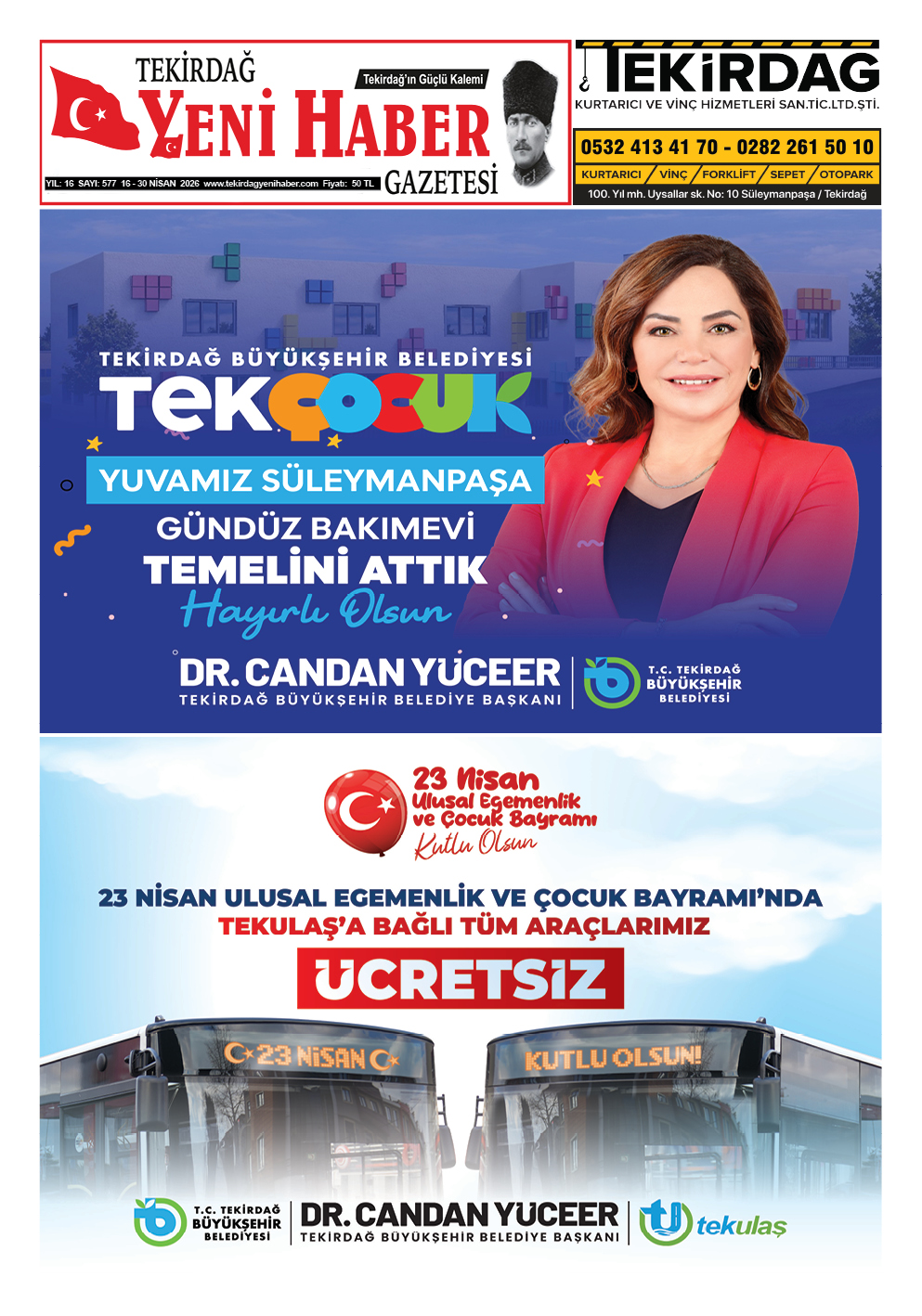 E-GAZETETekirdağ Yeni Haber Gazetesi 577.Sayı Çıktı 30/04/2026 Haber Merkezi 1 dkFacebookXWhatsAppTekirdağ Yeni Haber Gazetesi 577.Sayı Çıktı