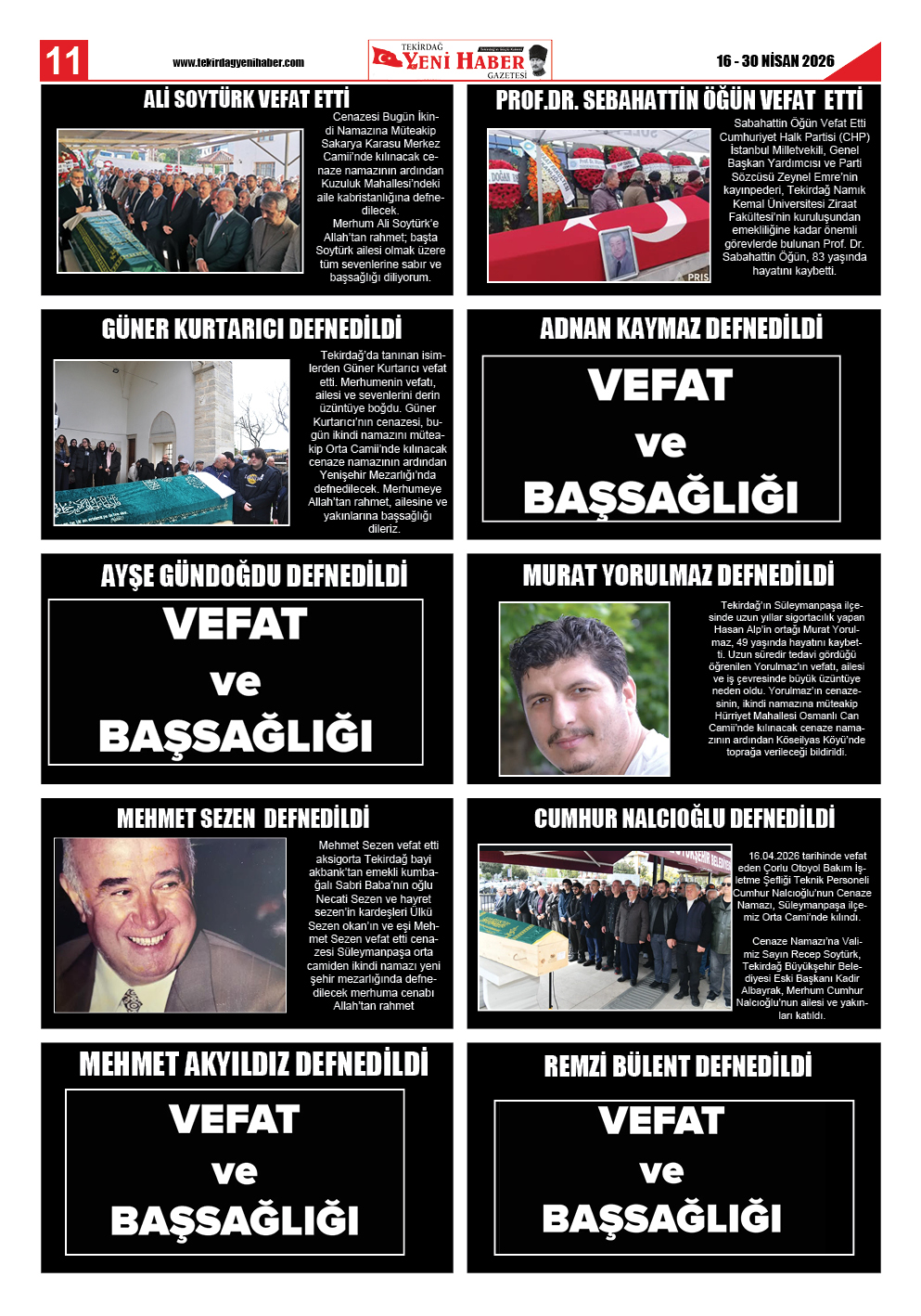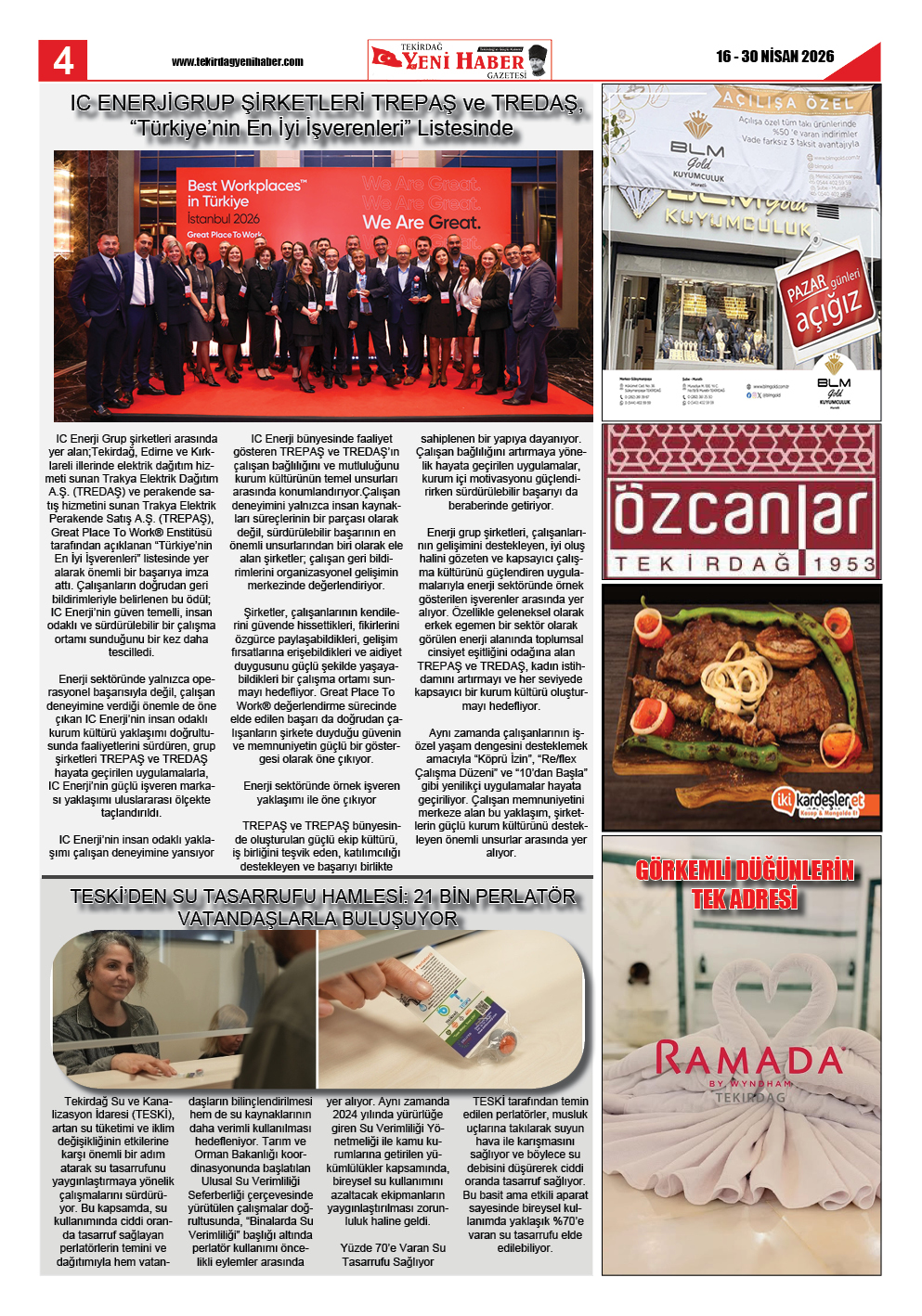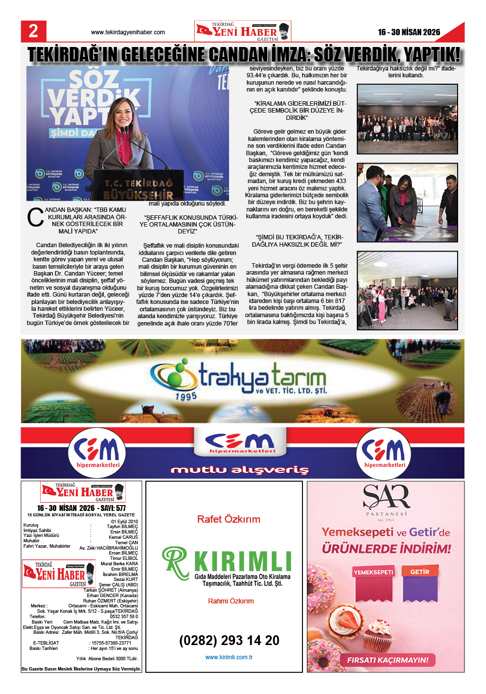E-GAZETETekirdağ Yeni Haber Gazetesi 577.Sayı Çıktı 30/04/2026 Haber Merkezi 1 dkFacebookXWhatsAppTekirdağ Yeni Haber Gazetesi 577.Sayı Çıktı